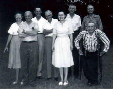 Jones family in 1962 - l to r - Bertha, Nova, Mark, Evan, Goldie, Paul, Laban, Dave (on crutches) |